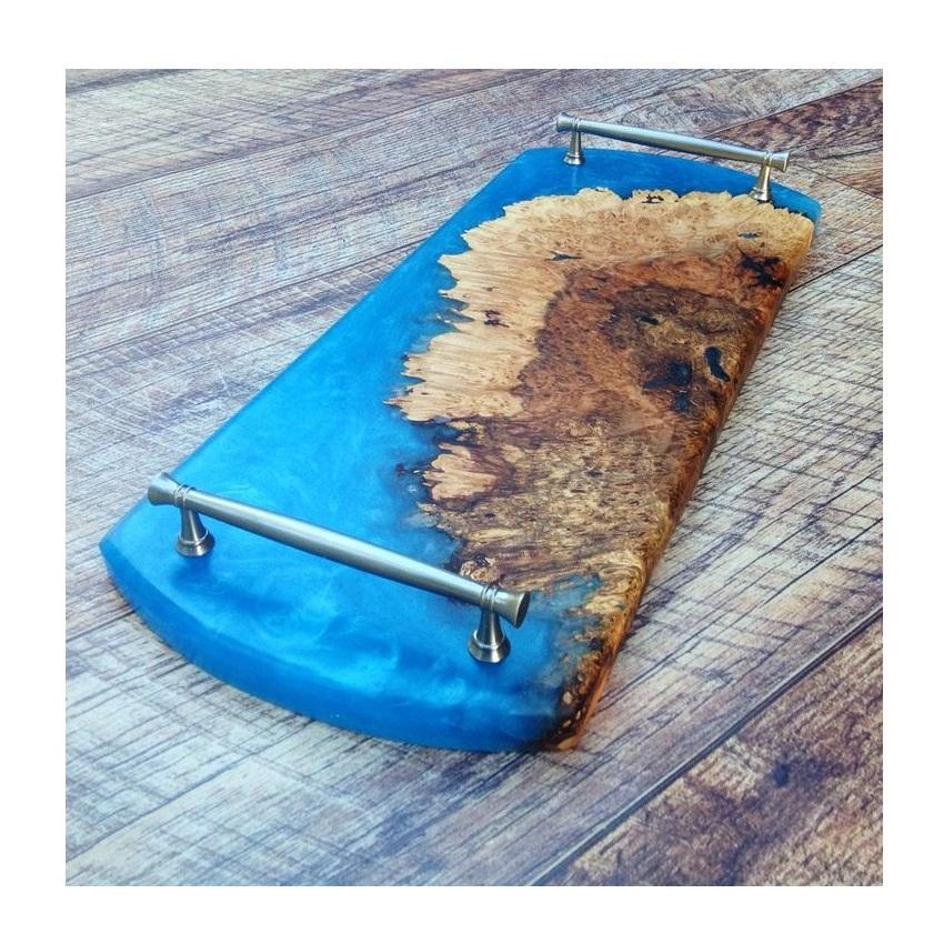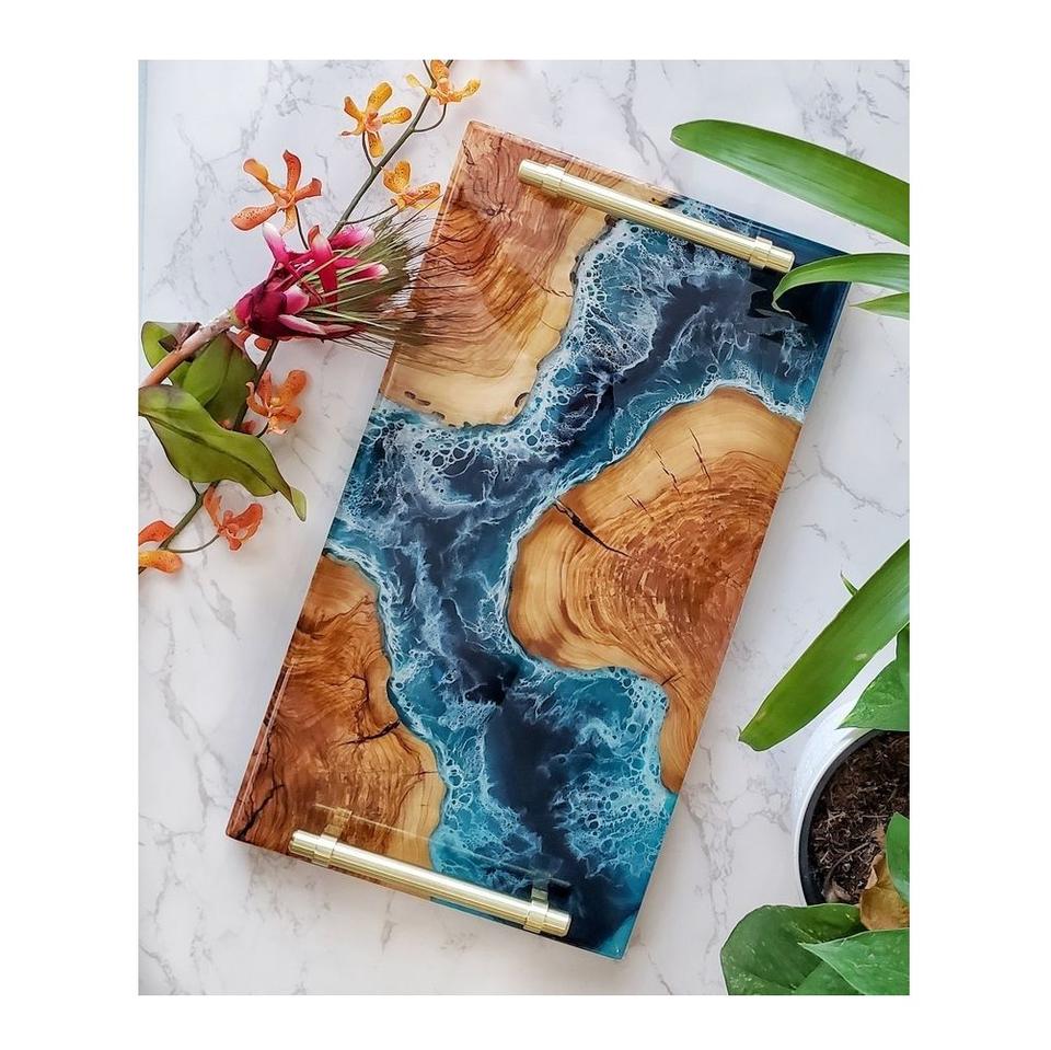 Wooden Serving Tray for Tea Drink Snacks Breakfast Serving Boards Tableware Handmade Serving Tray Boards with Brass Handles