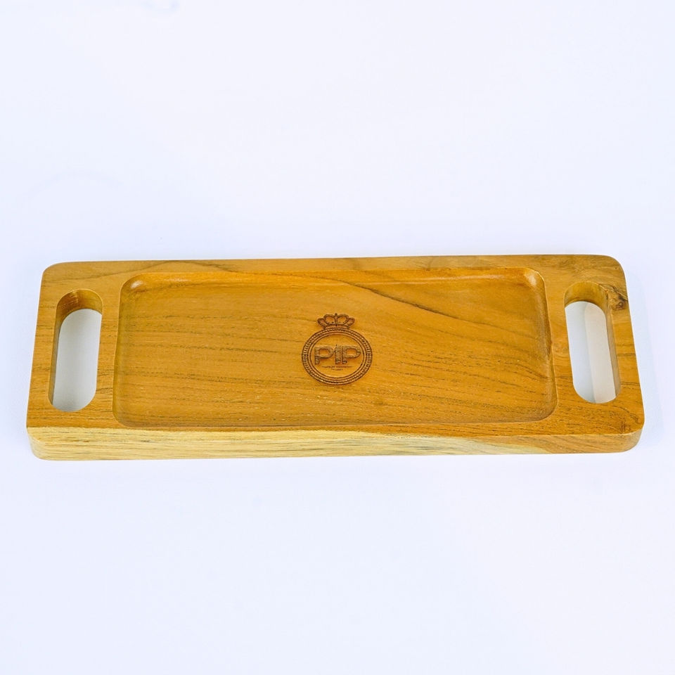 ถาดเสิร์ฟไม้มีสไตล์พร้อมที่จับอุปกรณ์จัดระเบียบใช้งานได้สำหรับห้องครัวห้องนั่งเล่นทานอาหารโต๊ะกาแฟสำหรับงานแต่งงาน