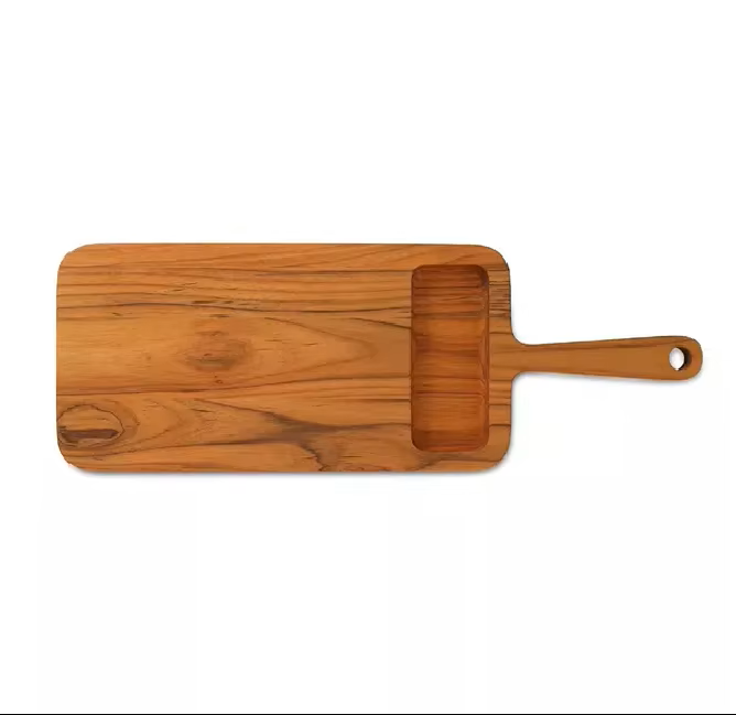 ถาดไม้ทรงสี่เหลี่ยม ดีไซน์เปลือกไม้ ถาดเสิร์ฟอาหารไม้ ถาดเสิร์ฟอาหารไม้จากอินเดีย ถาดเสิร์ฟอาหารไม้สำหรับโต๊ะครัว
