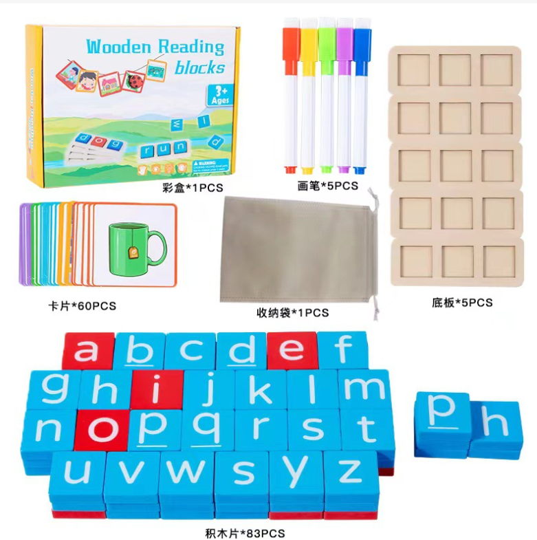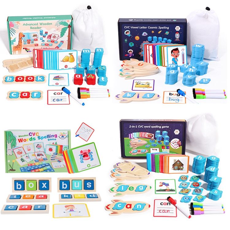 เกมไม้สะกดสั้น CVC แฟลชการ์ดปริศนาตัวอักษรเกมสะกดคำภาษาอังกฤษ