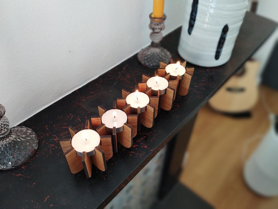เชิงเทียนไม้หกคอลัมน์เหมาะสำหรับตกแต่งบ้านโต๊ะกลางและโคมไฟเทศกาลทำด้วยมือจากอินเดีย