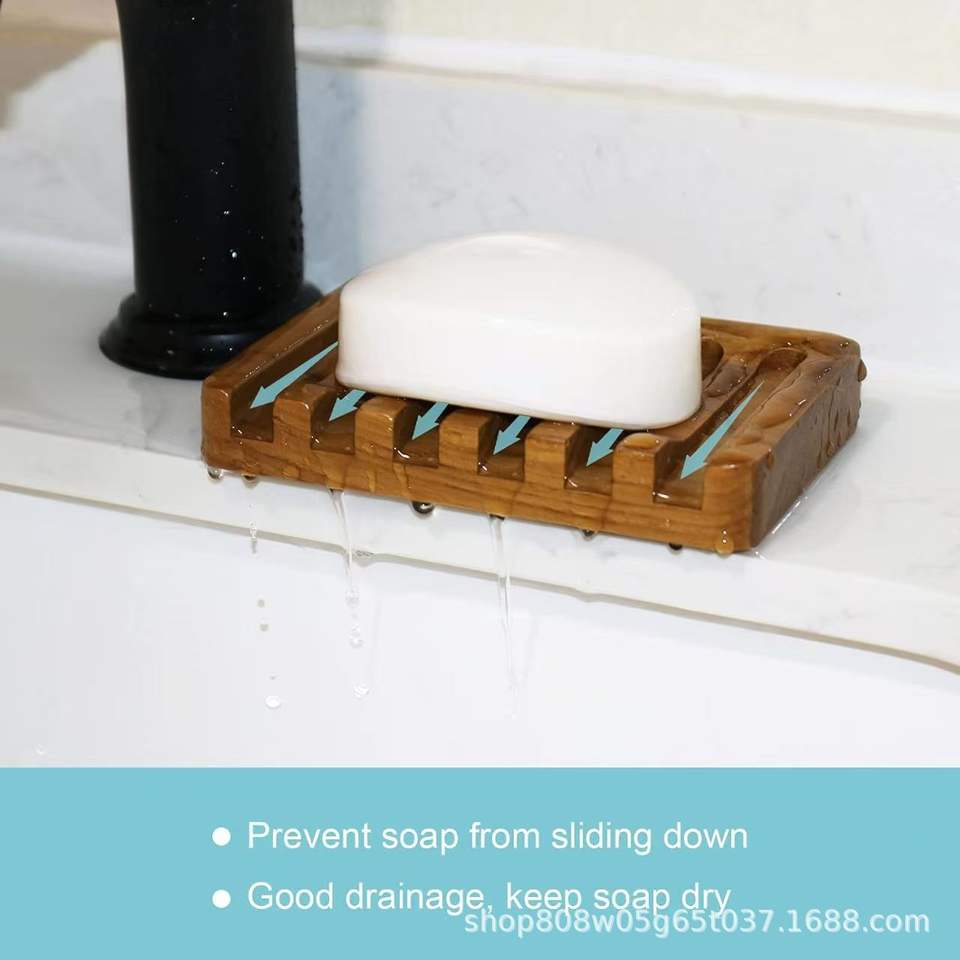ที่วางสบู่ไม้ติดผนังรูปสี่เหลี่ยมผืนผ้า ที่วางสบู่ไม้เนื้อแข็งสำหรับอ่างล้างหน้าในห้องน้ำ ใช้ในบ้าน สีเรโทร