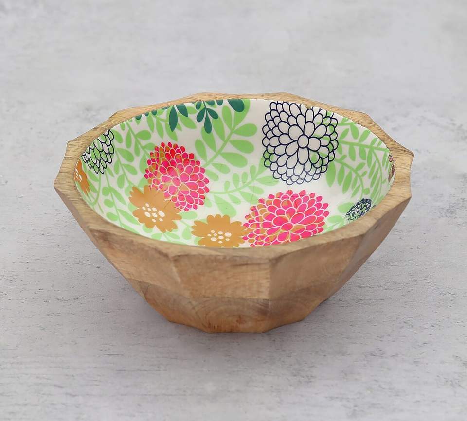 ชามไม้เคลือบลงยาพิมพ์ลายทำมือคุณภาพพรีเมียม