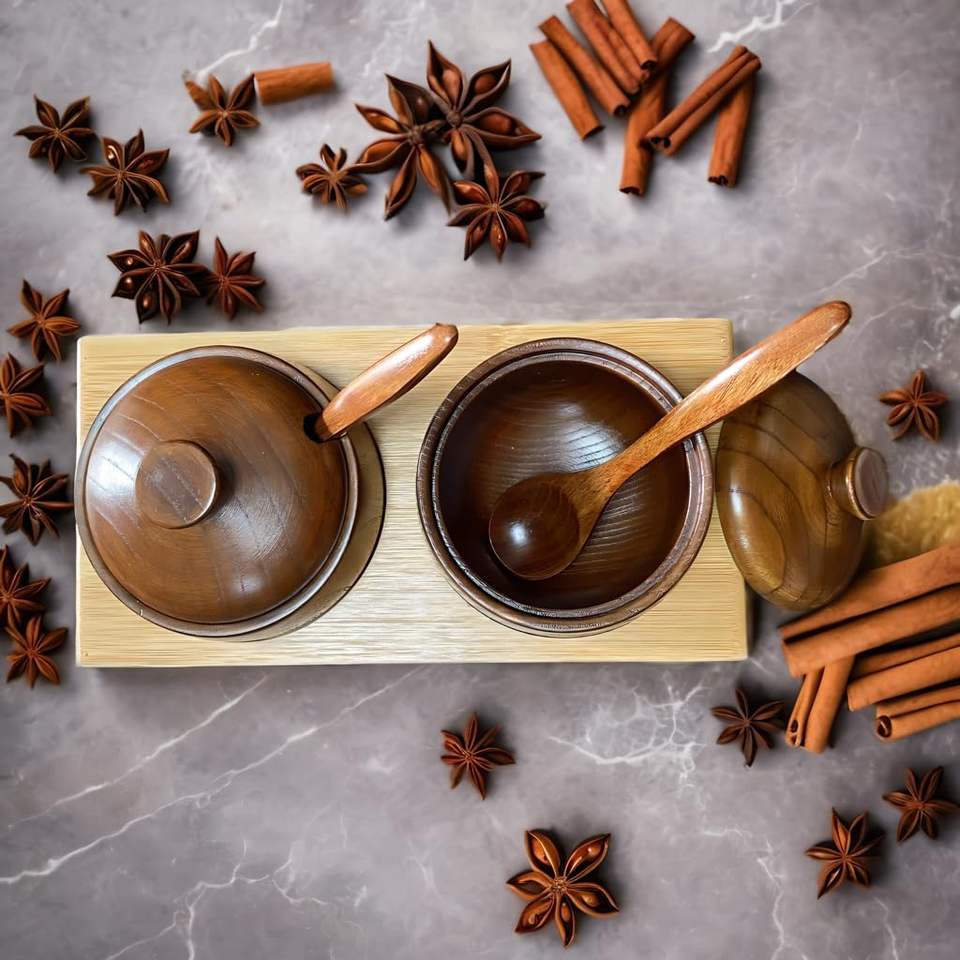 Wooden Eco-Friendly Foldable Spice & Salt Box Set 2-Piece Easy-Access Countertop Container for Your Favorite Seasonings