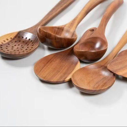 Wooden Spoon Kitchenware Natural Cooking Utensils High Quality Gold Plated Long Handle Eco-Friendly