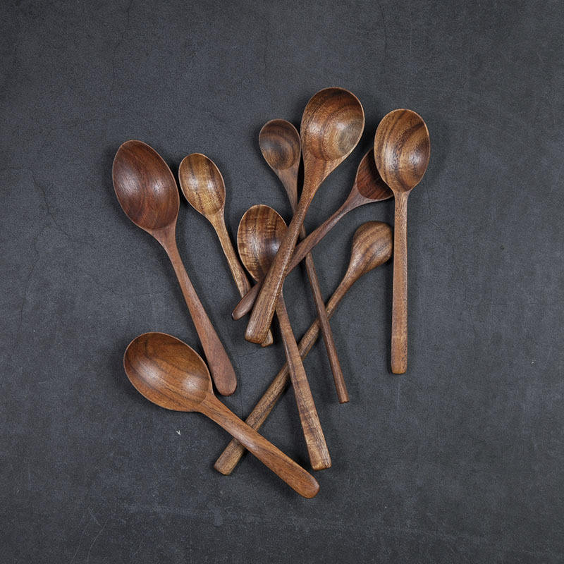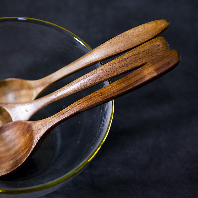 ชุดช้อนไม้ ไม้กระถินณรงค์ งานแฮนด์เมด สีพื้นเรียบง่าย สำหรับตักซุป ข้าว และอุปกรณ์เสิร์ฟ