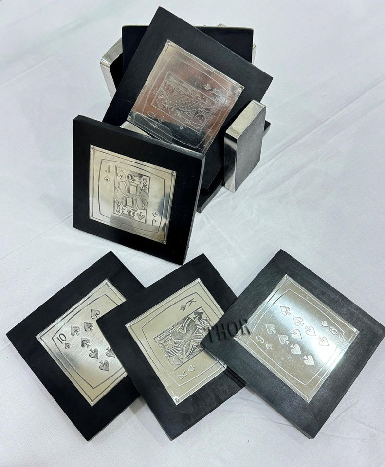Wooden Square Coasters and Holder Combo for Tea Cups Coffee Mugs and Water Glasses Tabletop Protection for Home Office Set of 6