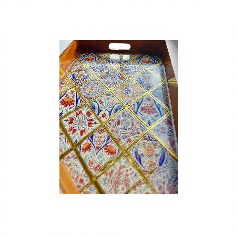 ถาดเสิร์ฟไม้ทรงสี่เหลี่ยม ด้ามจับโลหะ ดีไซน์อาร์ตเดโค งานฝีมือไม้เอนกประสงค์ สำหรับใช้ในงานแต่งงาน บ้าน โรงแรม โรงงาน