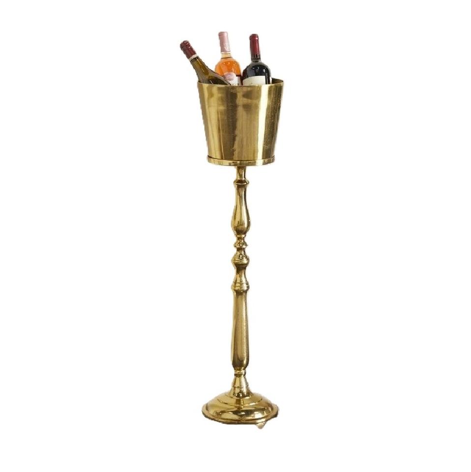 ถังน้ำแข็งโลหะพร้อมขาตั้งไม้ถังน้ำแข็งดีไซน์สีทองพร้อมขาตั้งสำหรับปาร์ตี้ขวดเครื่องดื่มไวน์สำหรับบาร์