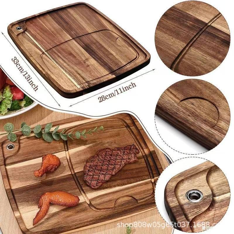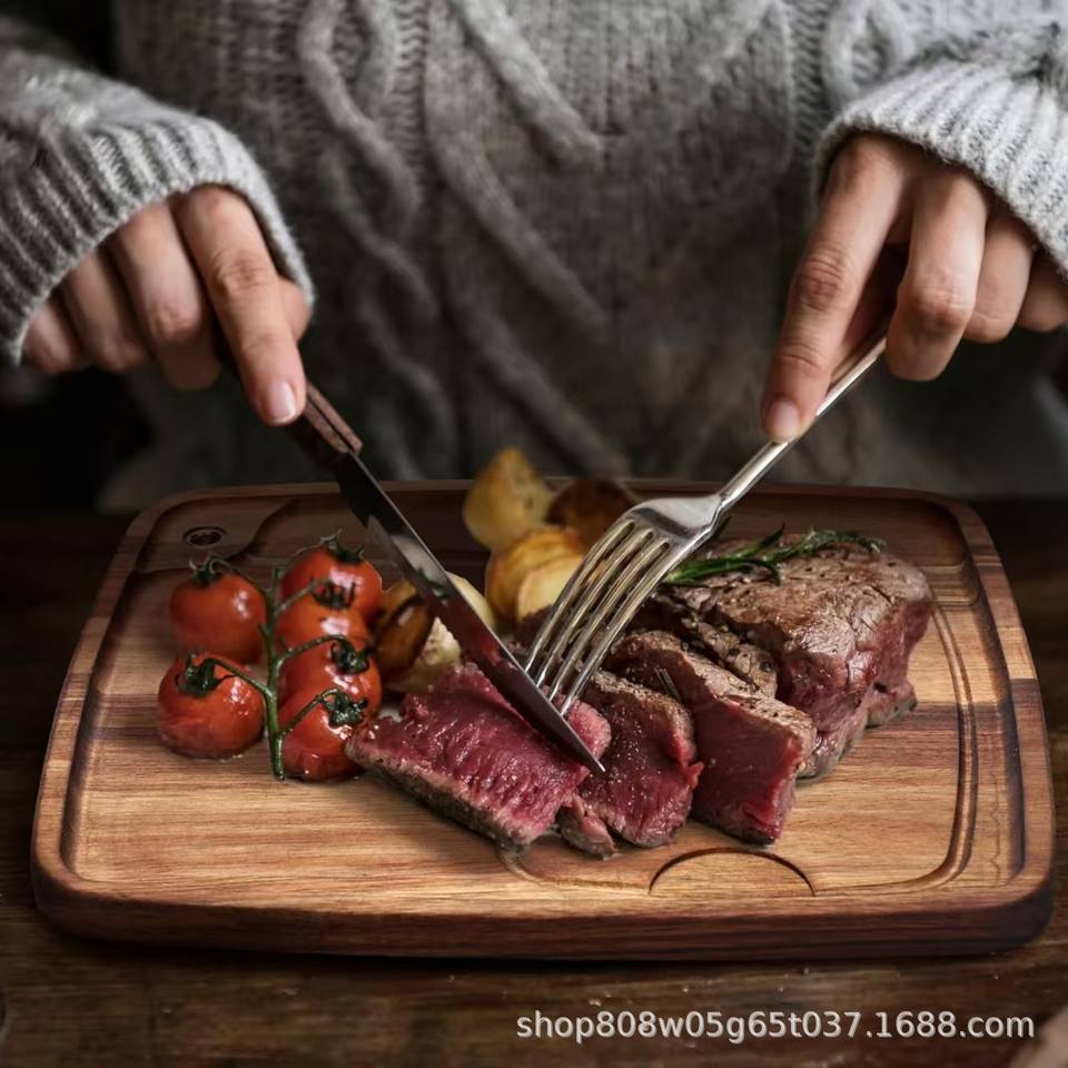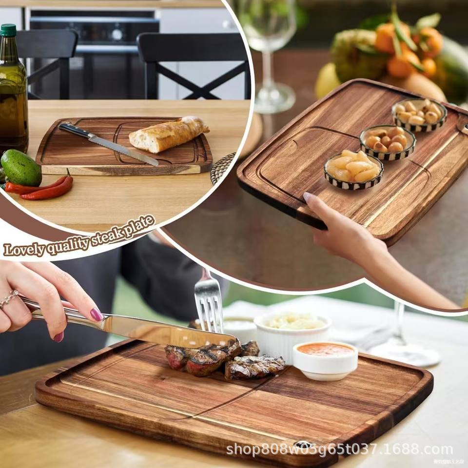 Wooden Steak Plate Rectangle Solid Wood Serving Board For Restaurant Party Use Retro Color 08025