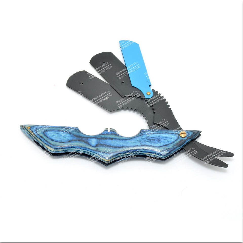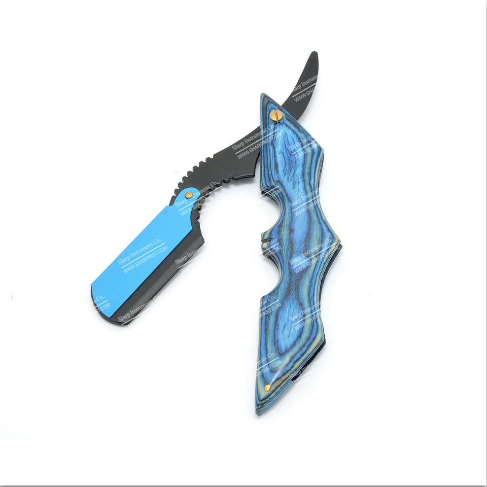 มีดโกนเหล็กสำหรับตัดผมตรง,มีดโกนหนวดทำจากไม้สีฟ้า