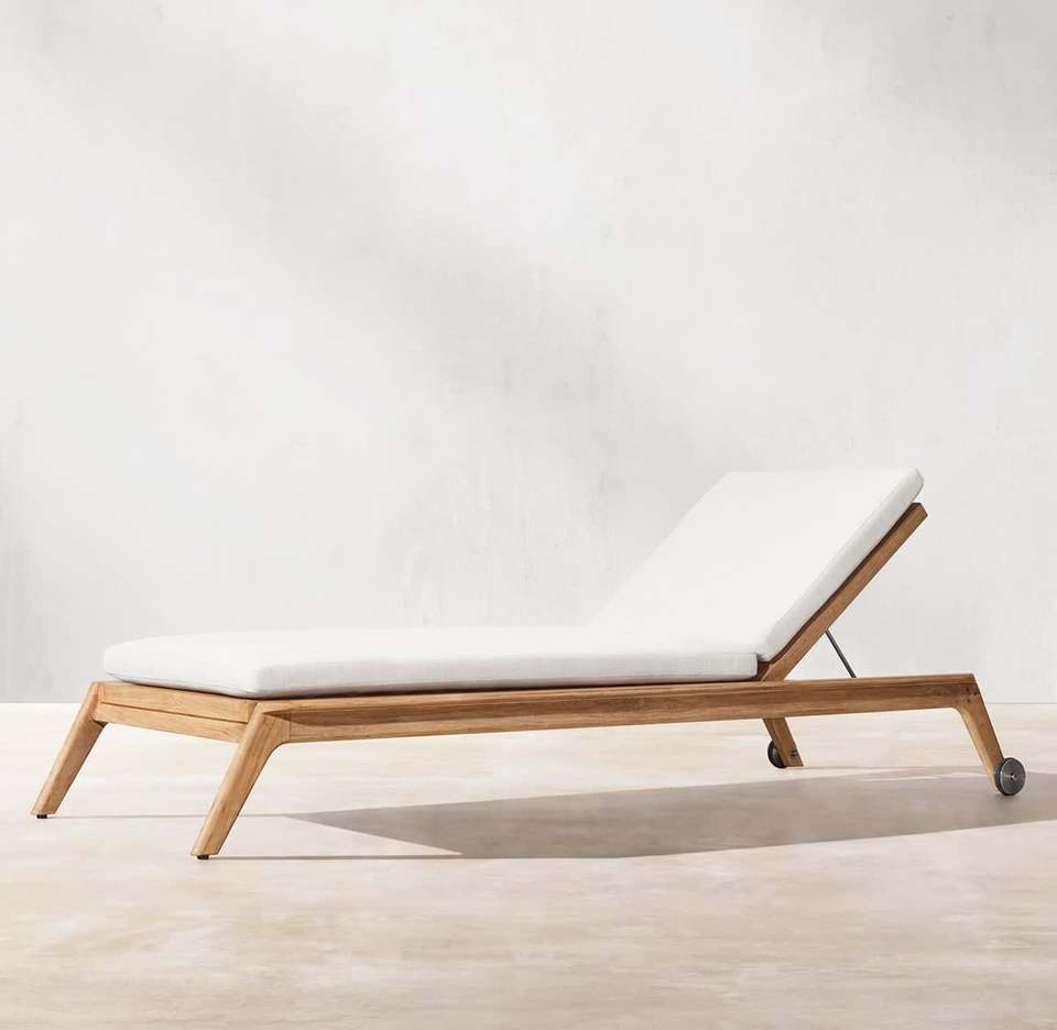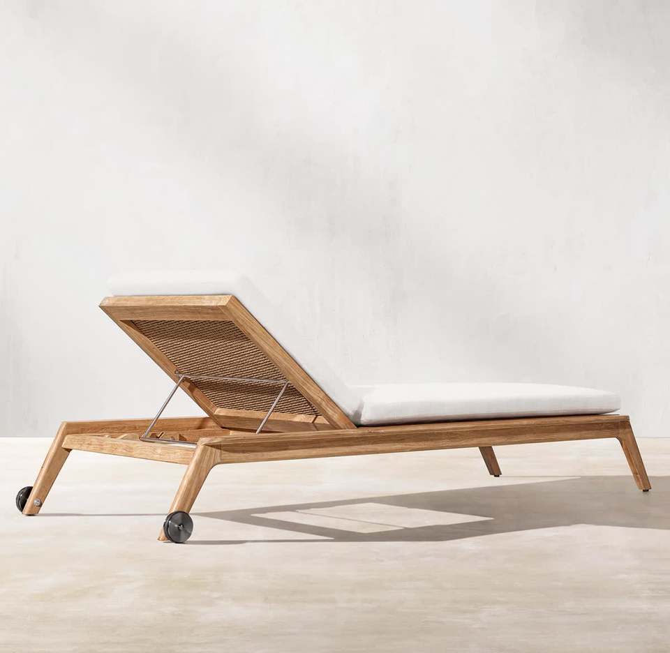 เก้าอี้อาบแดดไม้สักแท้ พร้อมหวายและเบาะกันน้ำ สำหรับเฟอร์นิเจอร์กลางแจ้ง