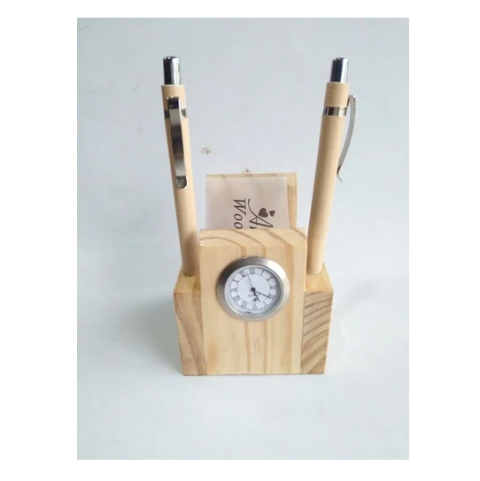 ที่วางดินสอโต๊ะทำจากไม้สีน้ำตาลพร้อมนาฬิกาสินค้าขายดี