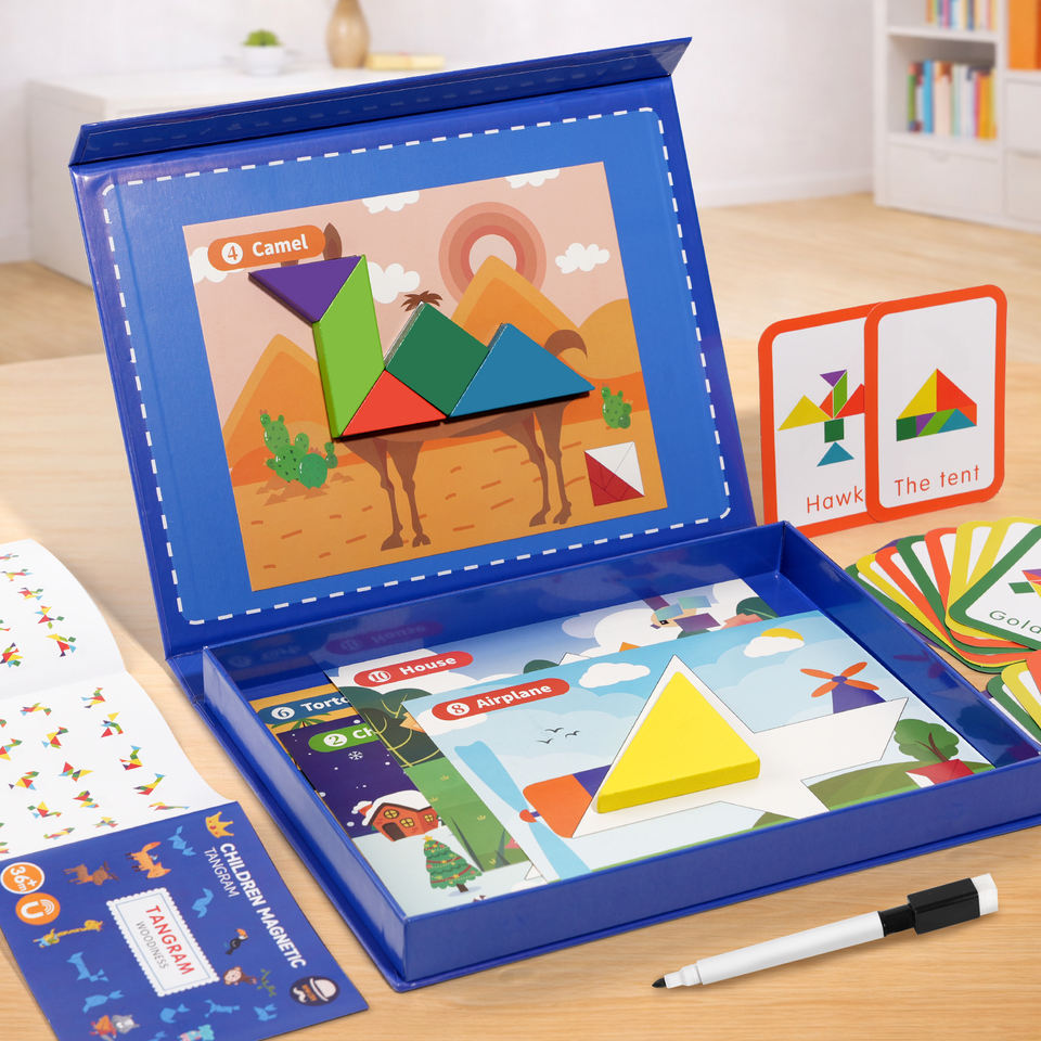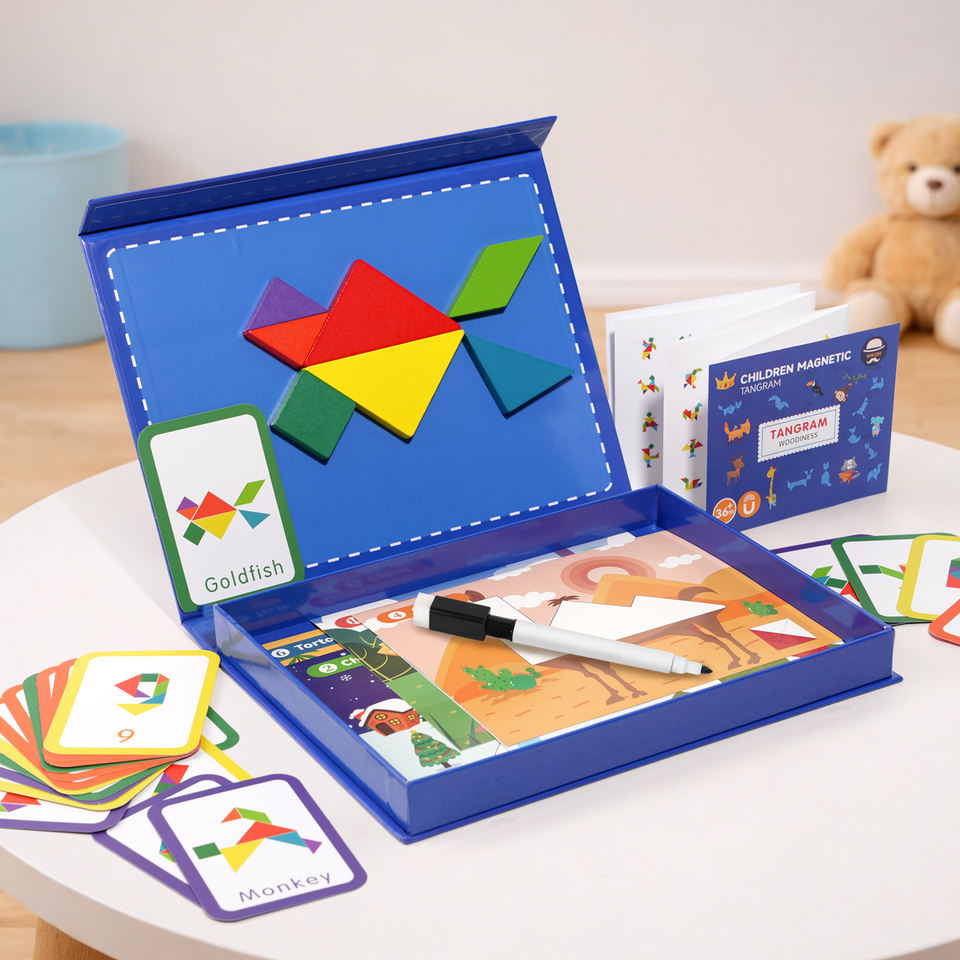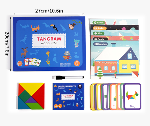 หนังสือปริศนาแทงแกรมไม้สำหรับเด็กและผู้ใหญ่ - ของเล่นเสริมพัฒนาการทางสติปัญญา ของขวัญฝึกสมอง
