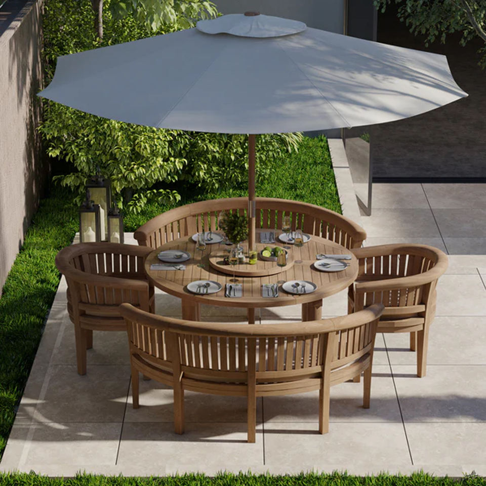 ชุดโต๊ะรับประทานอาหารไม้สักสำหรับกลางแจ้ง เก้าอี้และม้านั่ง - เอลซ่า