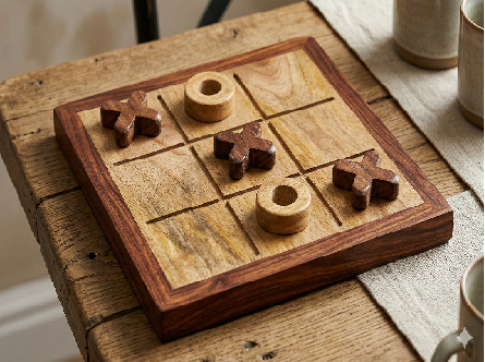 เกมกระดานไม้ TicTacToe ทำมือ ชุดเกมสำหรับสองคน เหมาะสำหรับงานปาร์ตี้ การเดินทาง กิจกรรมกลางแจ้ง กิจกรรมในร่ม ตกแต่งโต๊ะกาแฟ และเป็นของขวัญ