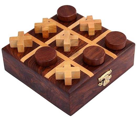 เกม TAC Tac Toe ทำจากไม้ออกแบบมาเพื่อความบันเทิงการเล่นเกมที่ราบรื่นและโทเค็นที่สร้างขึ้นอย่างสวยงาม