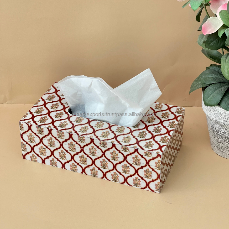 กล่องกระดาษทิชชู่ไม้ที่ใส่กระดาษเช็ดปากพร้อมกล่องใส่กระดาษทิชชู่ตกแต่งพิมพ์ลายอินเดียแบบดั้งเดิมสำหรับใช้ในบ้านและสำนักงาน