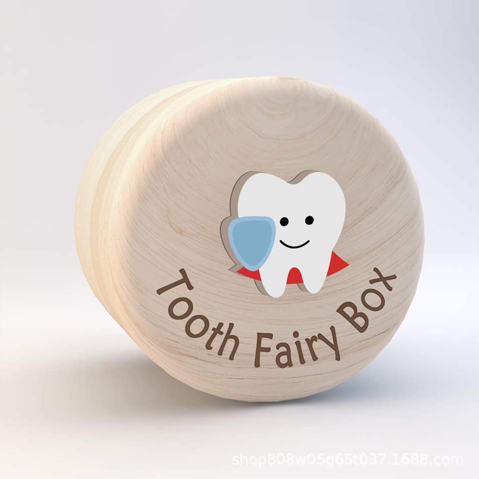 กล่องใส่ฟันน้ำนมไม้พร้อมฝาปิดสำหรับเก็บฟันน้ำนมเด็ก ของขวัญงานฝีมือ