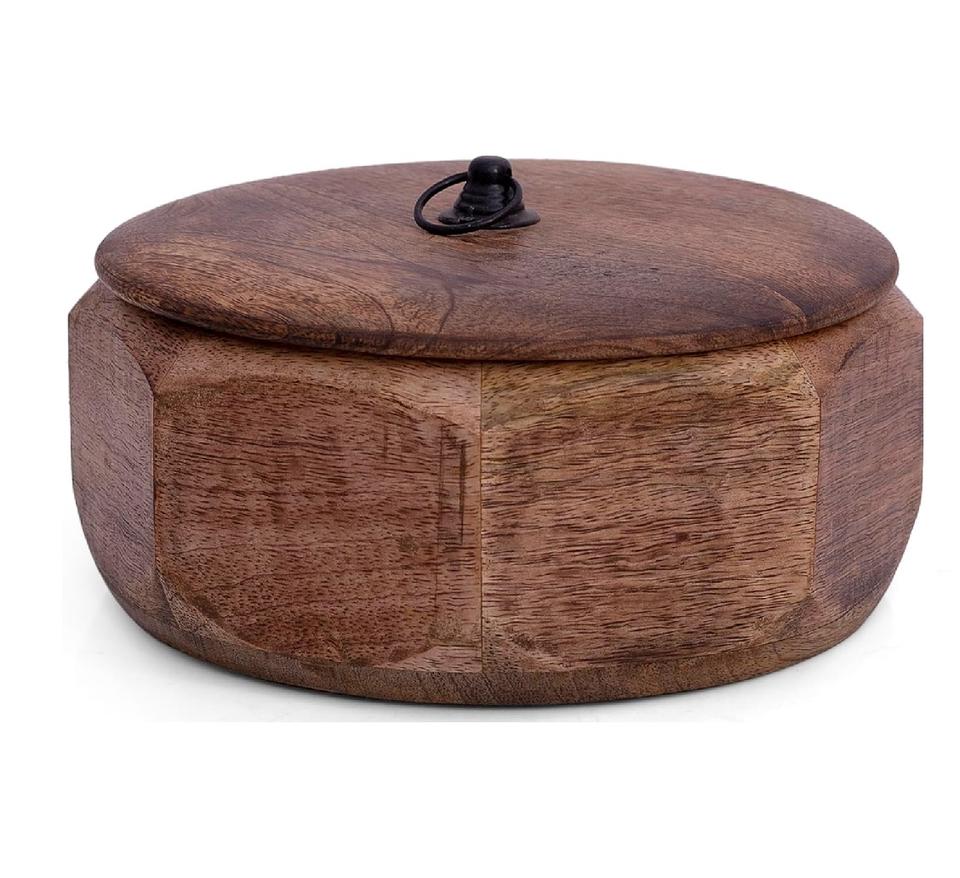 กล่องอุ่นโรตีไม้ กล่องเก็บโรตี ชัปปิตี ที่ใส่ขนมปัง หม้ออุ่นอาหาร พร้อมฝาปิด ของตกแต่งห้องครัวและห้องรับประทานอาหาร