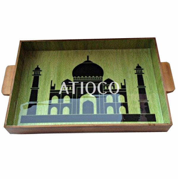 Wooden Tray Multicolored Print Lacquered Latest & Modern Serving Tray Smart Look Stylish Best Selling Enameled Tray