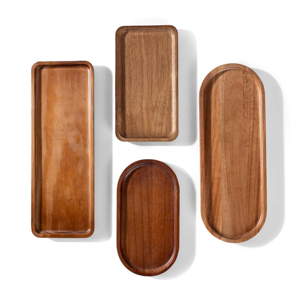 ชุดถาดไม้มีขนาดและรูปร่างแตกต่างกันสำหรับตกแต่งโต๊ะใช้ในห้องครัวเหมาะสำหรับรับประทานอาหารที่บ้านและให้เป็นของขวัญ