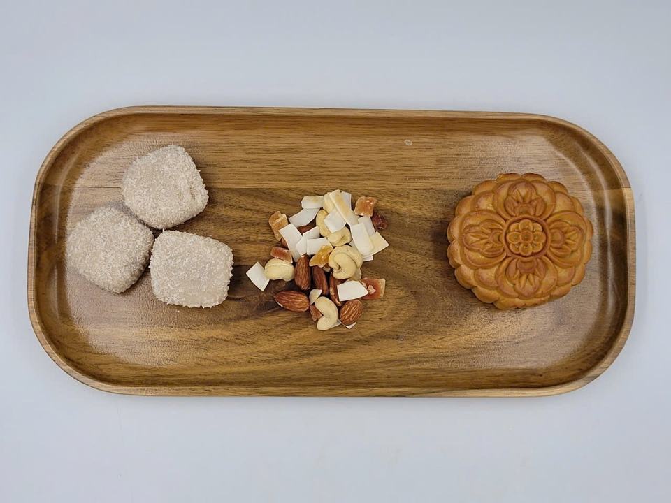 ถาดไม้ยางพาราพร้อมด้ามจับแบบตัดสำหรับโรงแรมบริการอาหารและงานอีเว้นท์จากเวียดนาม