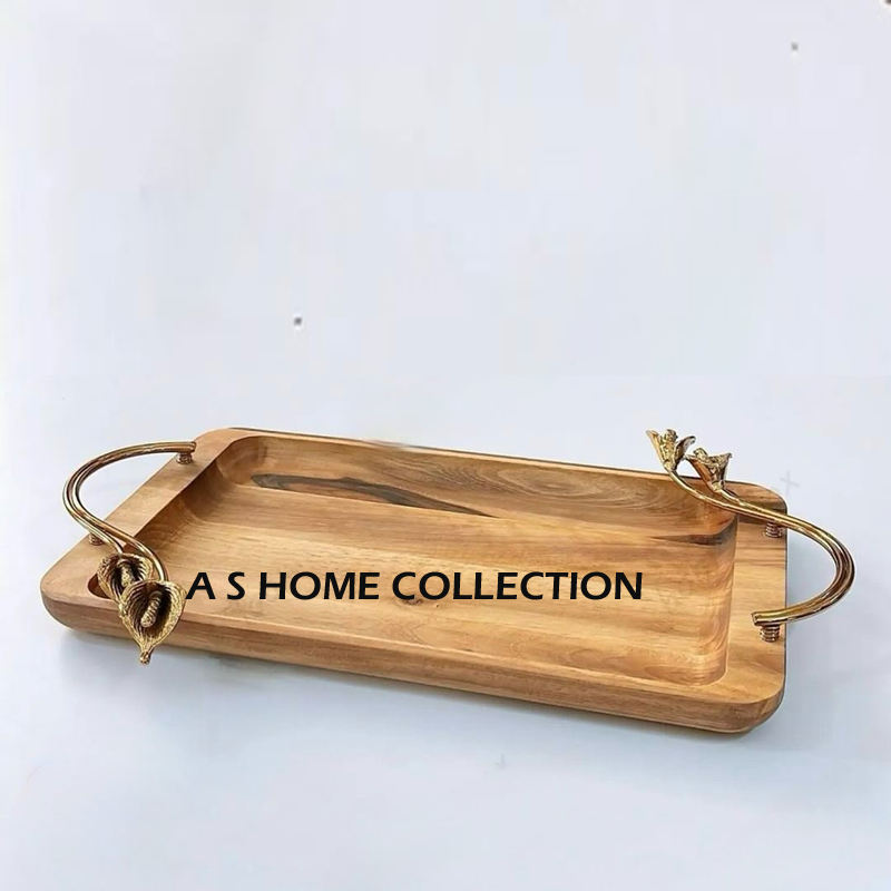 ถาดไม้พร้อมที่จับลายดอกลิลลี่แคลลาถาดเสิร์ฟอาหารอุปกรณ์ครัวถาดโชว์ขนมหวานในบ้าน