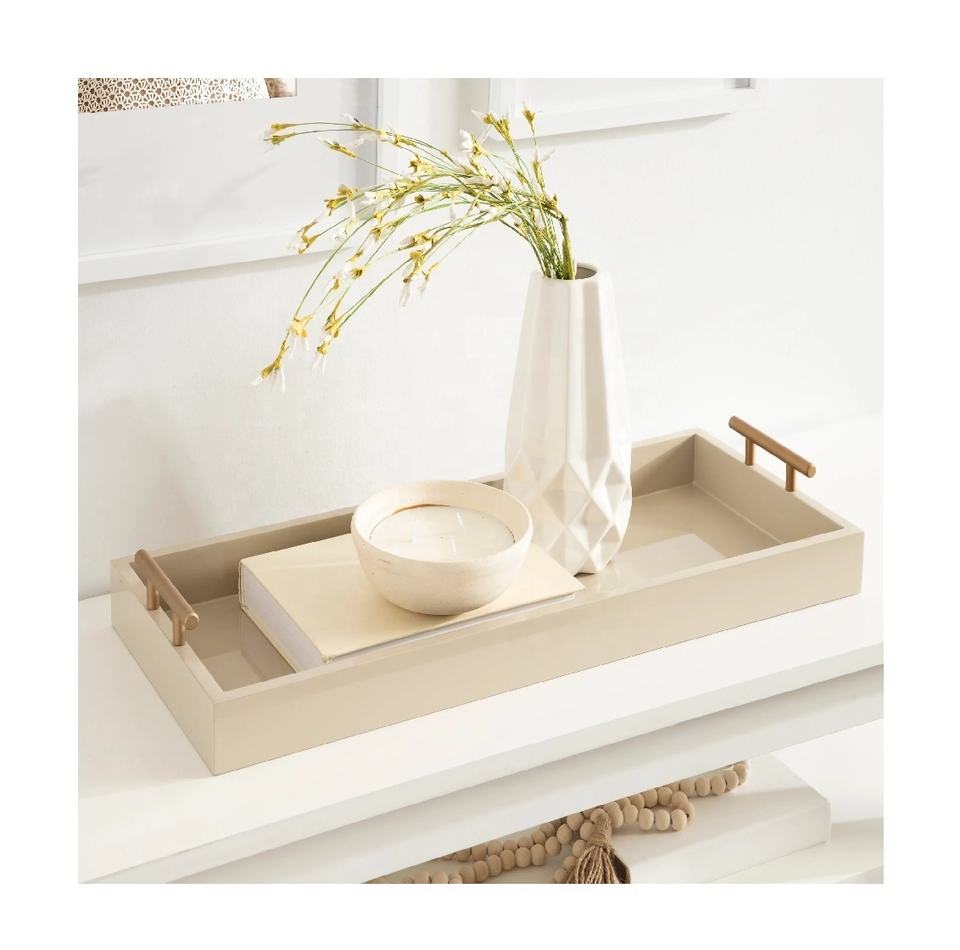 ถาดไม้พร้อมที่จับโลหะผู้ผลิตรูปสี่เหลี่ยมผืนผ้า
