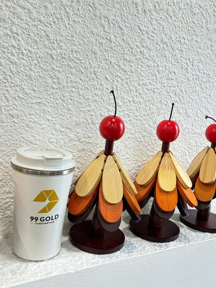 ที่รองแก้วไม้ทำด้วยมือทำจากไม้เนื้อแข็งที่รองแก้วต้นคริสต์มาสสำหรับโต๊ะเวียดนามโดย99ข้อมูลทอง