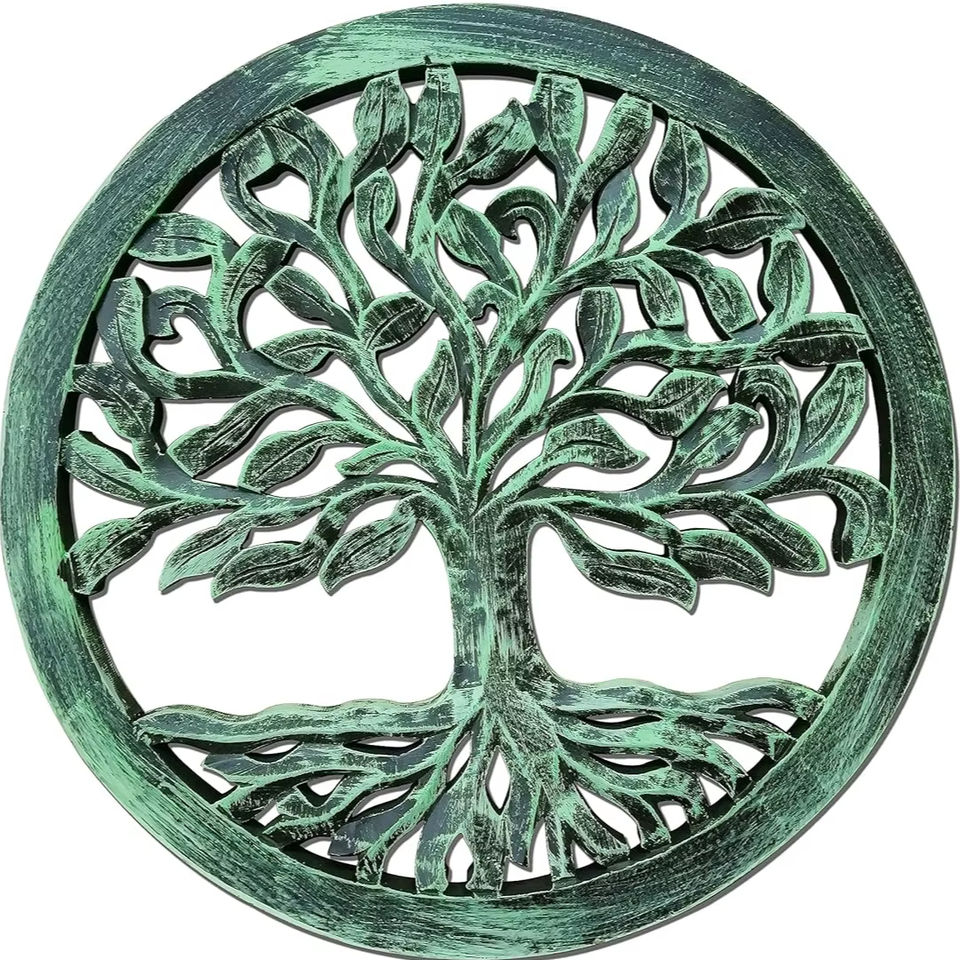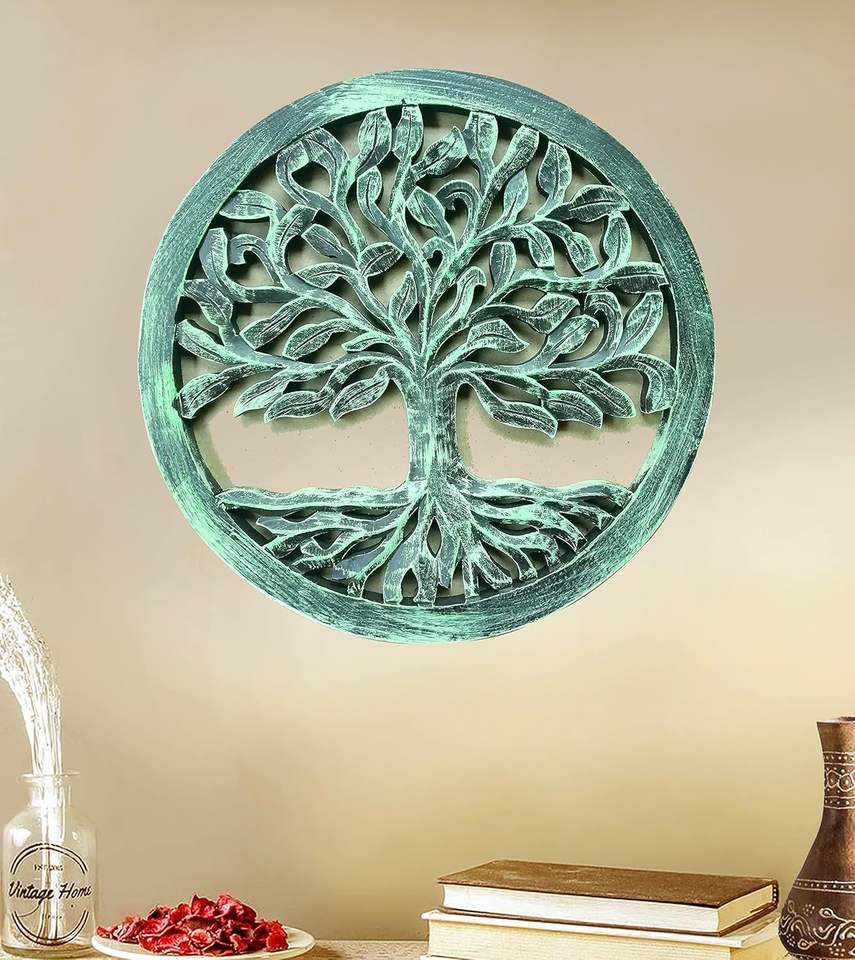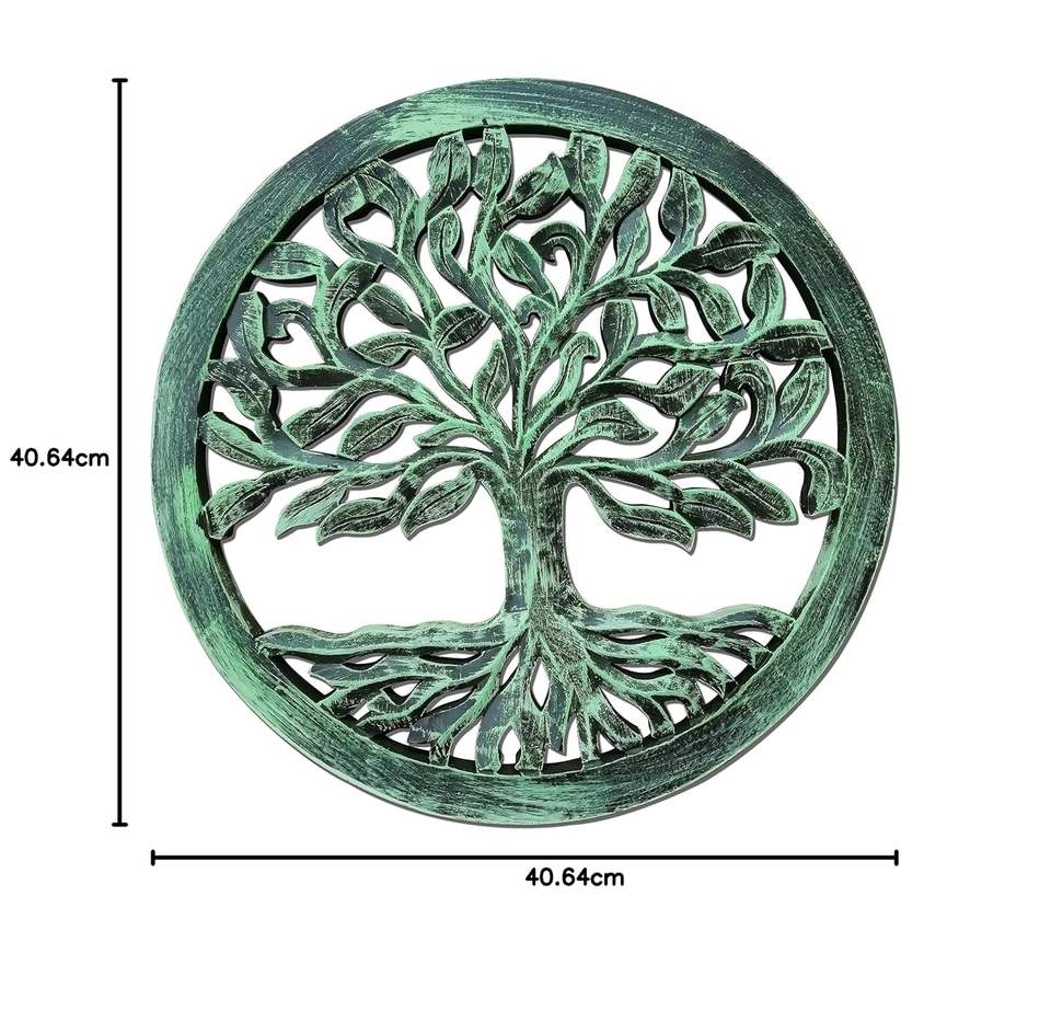 งานตกแต่งผนังต้นไม้แห่งชีวิตทำจากไม้ ขนาดเส้นผ่านศูนย์กลาง 16 นิ้ว แผงแขวนผนัง สำหรับตกแต่งห้องนั่งเล่น ภายในและภายนอกอาคาร ลายโบราณ