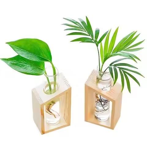 แจกันไม้ทรงกระบอกพร้อมแก้วใสสำหรับตกแต่งดอกไม้บนโต๊ะหรือชั้นวาง