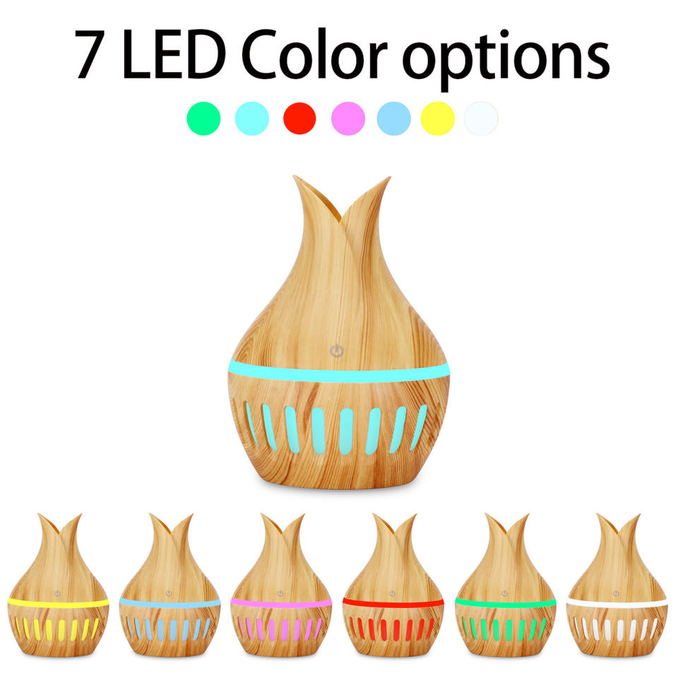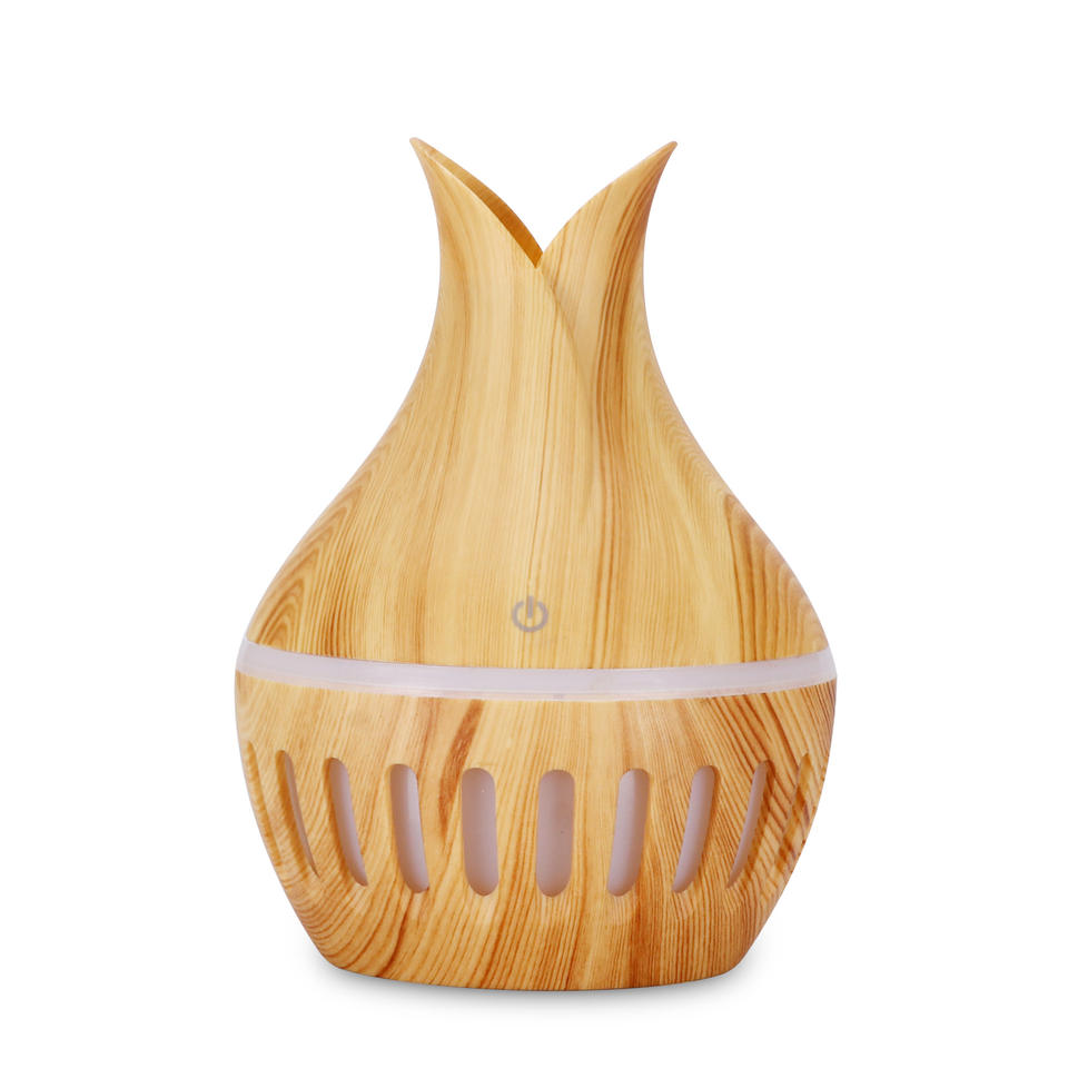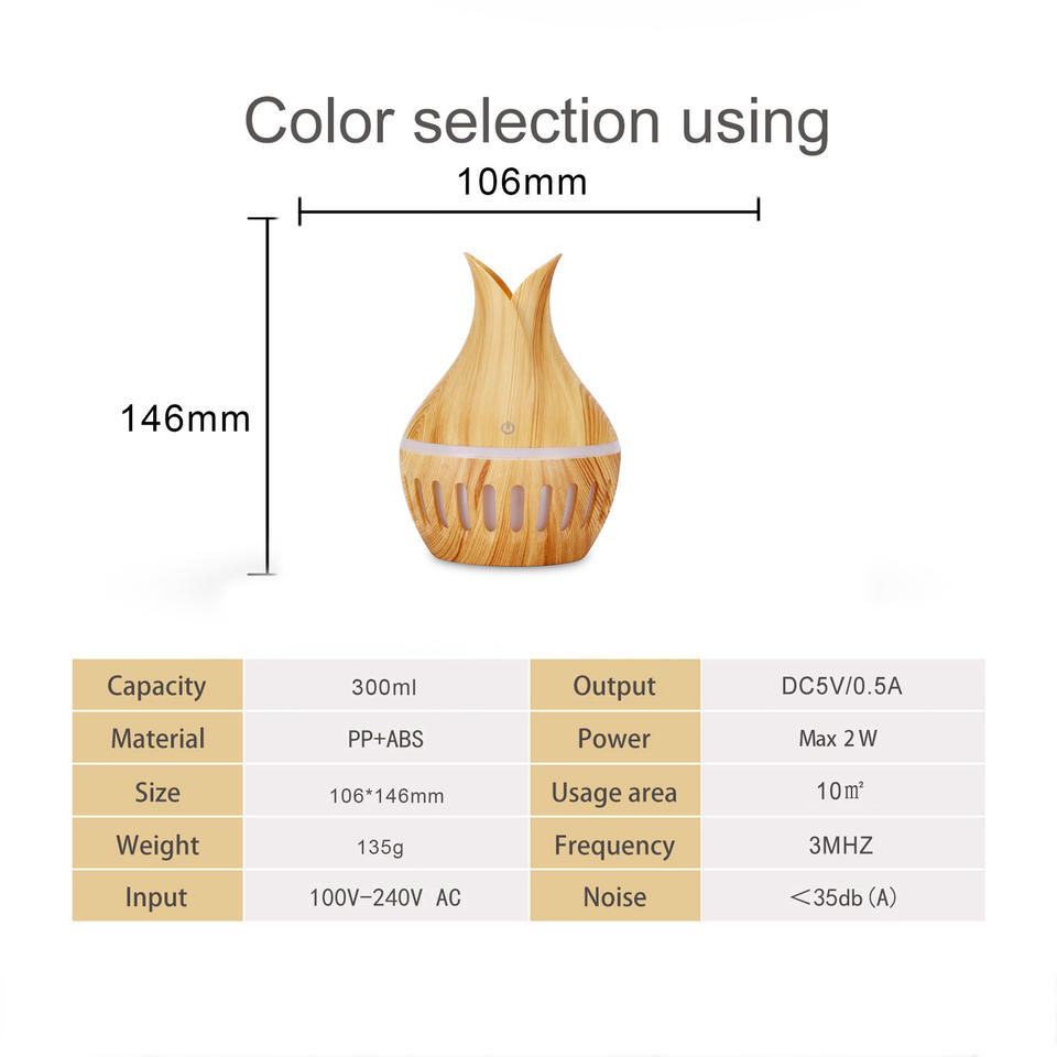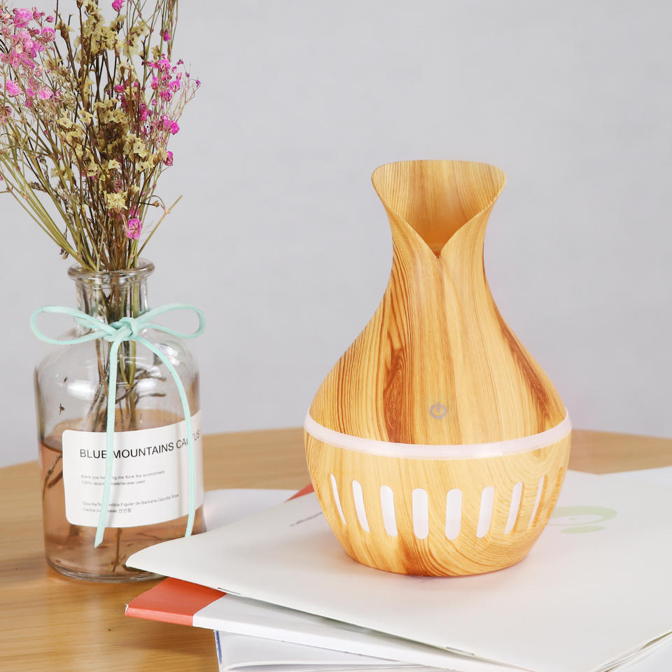 เครื่องเพิ่มความชื้นในอากาศแบบแจกันไม้ 300 มล. แบบ USB เครื่องฟอกอากาศอโรมาเธอราพีสำหรับบ้าน ใช้ได้กับพื้นที่ขนาดไม่เกิน 10 ตร.ม. สำหรับห้องนอน