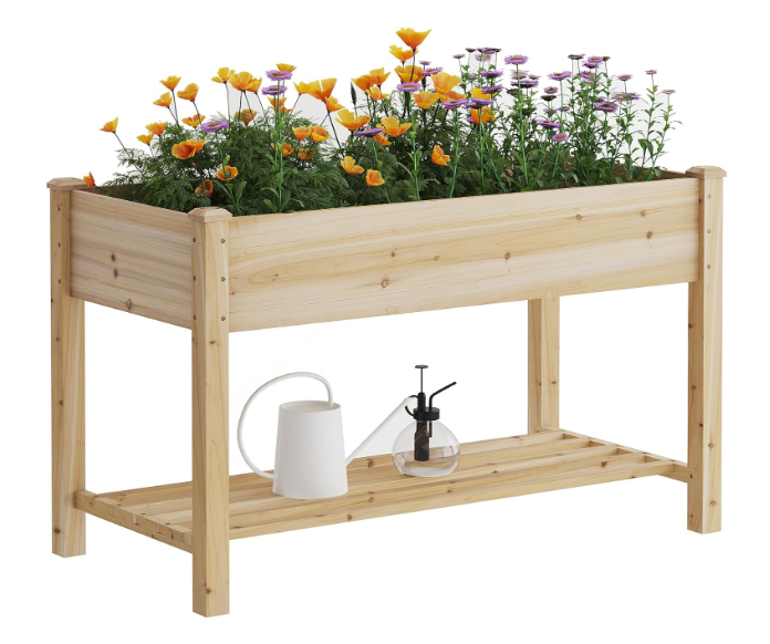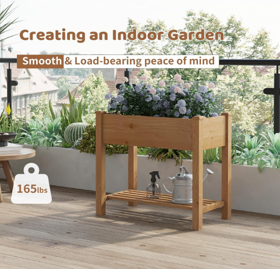 กระถางปลูกต้นไม้ทรงสูงแบบฟาร์มเฮาส์เคลือบไวนิลลายไม้ ขนาดใหญ่ เป็นมิตรกับสิ่งแวดล้อม พร้อมขาตั้ง สำหรับปลูกผักและดอกไม้ในบ้าน