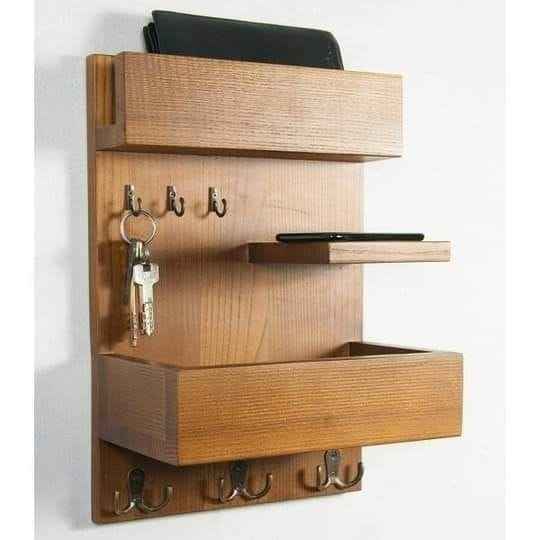 ที่แขวนกุญแจติดผนังไม้ ดีไซน์สวยเก๋ไม่ซ้ำใคร ที่แขวนกุญแจติดผนังไม้เนื้อแข็ง พร้อมชั้นวางลอย