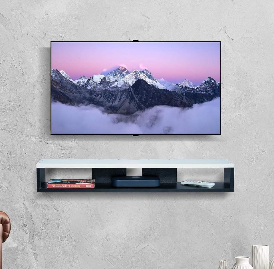 ตู้วางทีวีติดผนังไม้ พร้อมชั้นวางของสำหรับห้องนั่งเล่น/ชุดอุปกรณ์ความบันเทิงทีวีไม้เอ็นจิเนียร์