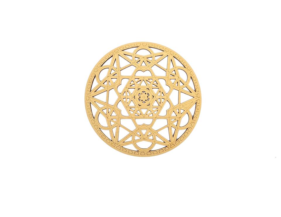 งานแกะสลักไม้สนสำหรับตกแต่งผนังบ้าน สำนักงาน สตูดิโอโยคะ ห้องทำสมาธิ ด้วยลวดลายเรขาคณิตศักดิ์สิทธิ์