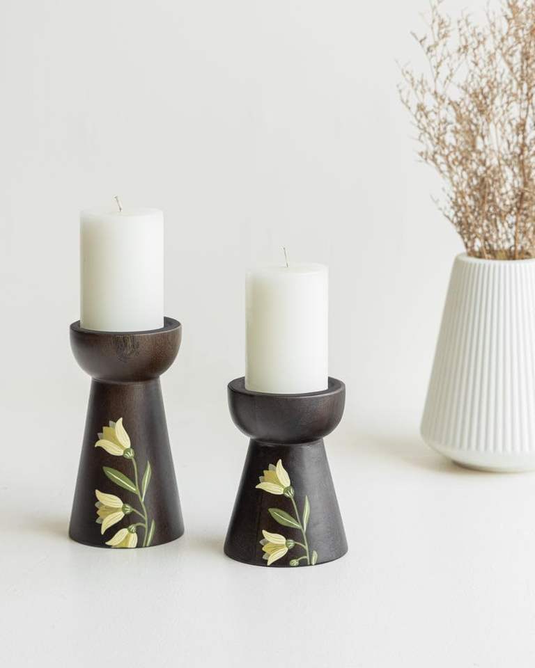เชิงเทียนไม้วอลนัทหกเหลี่ยมสำหรับใส่เทียนชาไอเดียของขวัญสำหรับงานแต่งงานวันครบรอบตกแต่งบ้าน