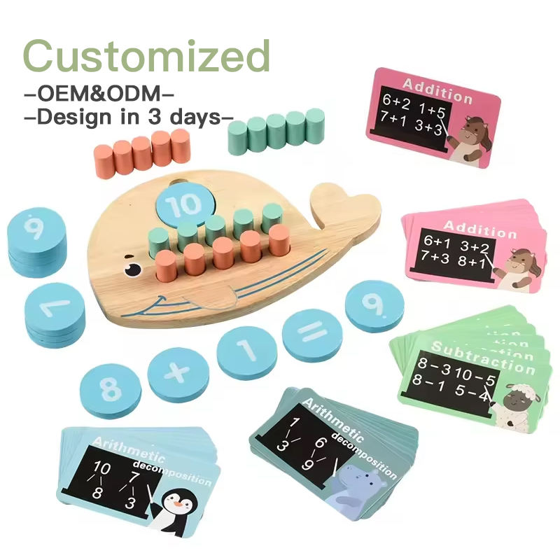 ของเล่นเพื่อการศึกษาสำหรับเด็กทำจากไม้รูปปลาวาฬสิบตัว