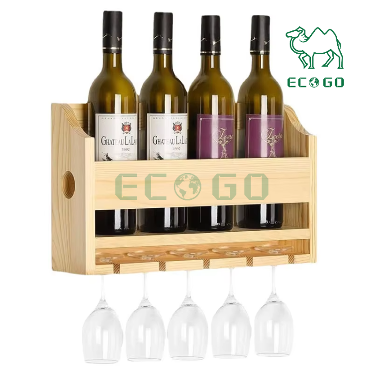 ชั้นวางไวน์ไม้ติดผนังพร้อมที่วางแก้วที่วางขวดไวน์ไม้ไผ่