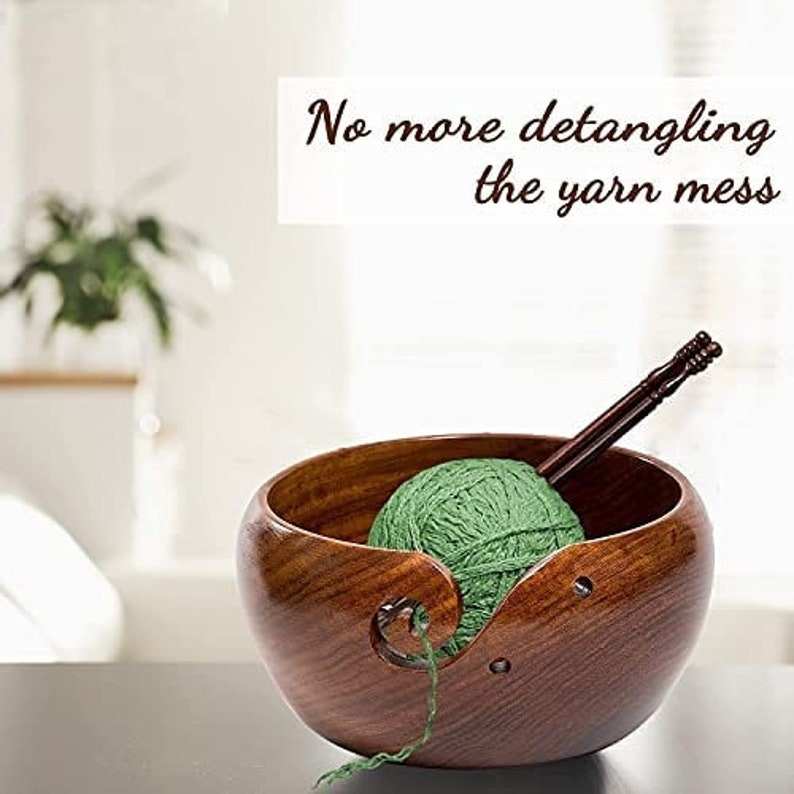 ชามไหมพรมไม้ขนาด7x4นิ้วทำด้วยมือสำหรับถักโครเชต์ชามพร้อมตะขอทำจากไม้และกระเป๋าเดินทางของขวัญ