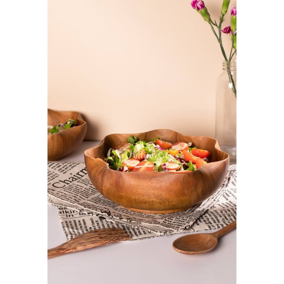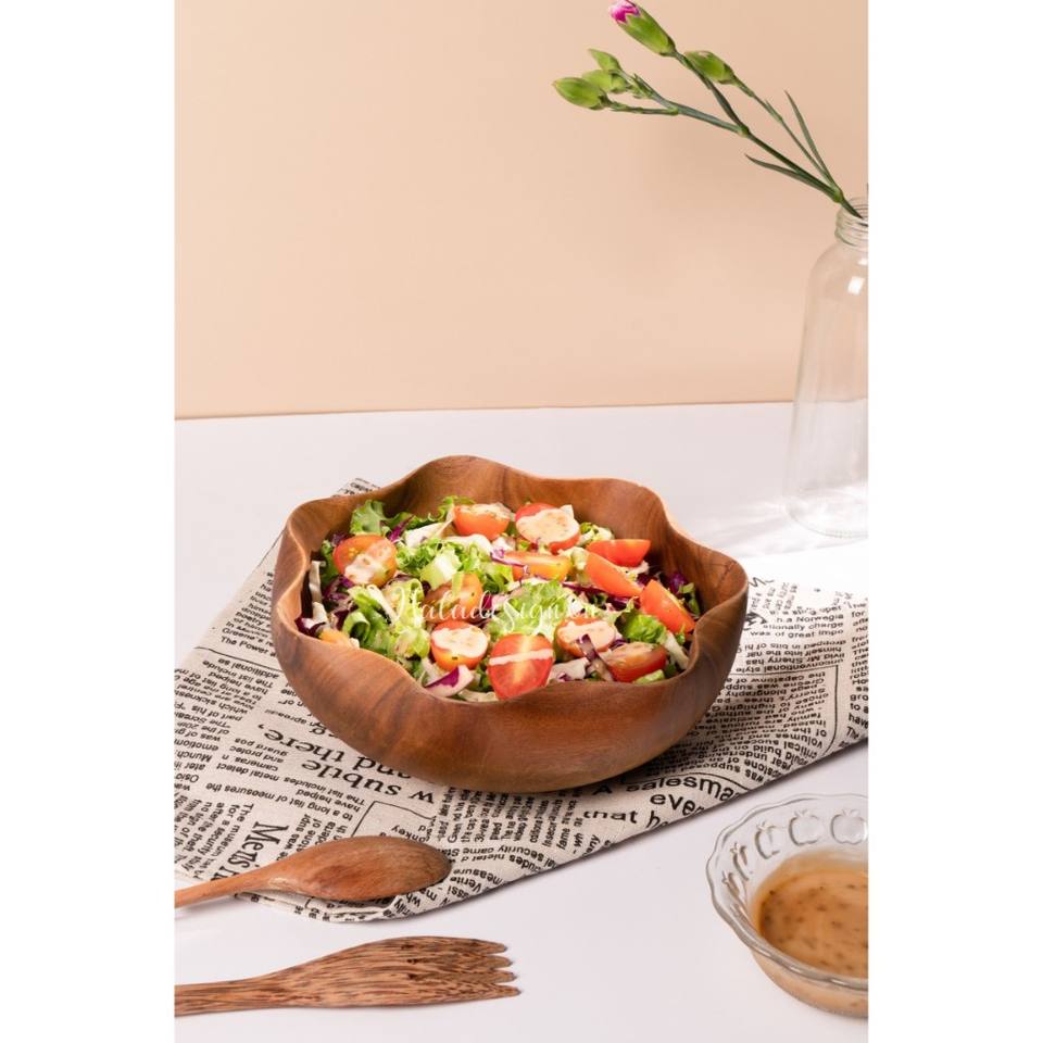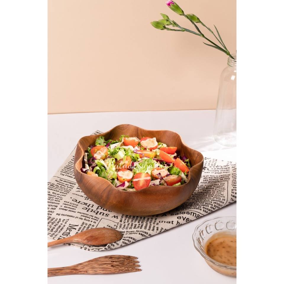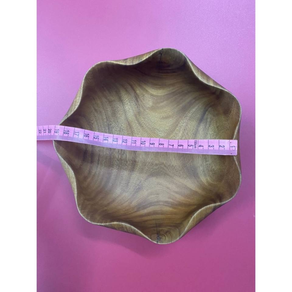 ชามสลัดไม้กระถินทนความร้อน ทำด้วยมือ พร้อมลายไม้พะยูงแกะสลักลายคลื่น ชามใส่ของว่างตกแต่ง