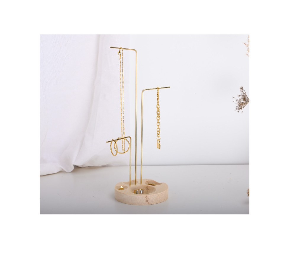 ที่ใส่เครื่องประดับทำจากไม้และทองเหลืองขาตั้งเคลือบเงาสีทองขัดเงาชั้นวางเครื่องประดับเรียกร้องในราคาที่สมเหตุสมผล