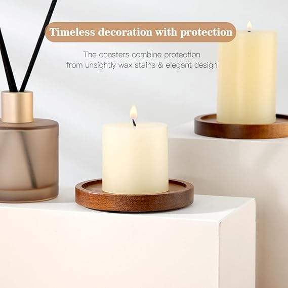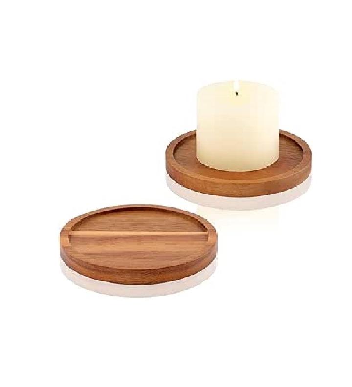 ถาดไม้ทรงกลมสำหรับวางเทียนตกแต่งสไตล์มินิมอล ของตกแต่งบ้านสไตล์เรียบง่าย ฐานวางเทียนทีไลท์ ชุด 2 ชิ้น