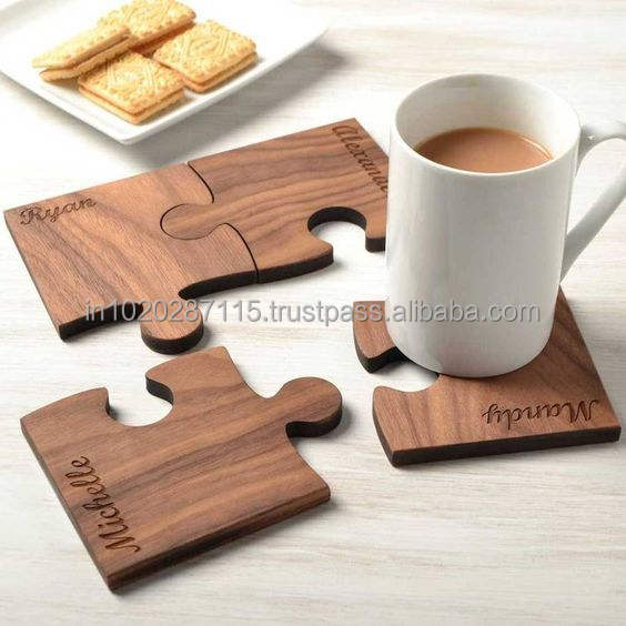 ถาดรองแก้วไม้ดีไซน์การตัดด้วยเลเซอร์มีลายเถาใบไม้เหมาะสำหรับบ้านแบบชนบทเครื่องใช้บนโต๊ะอาหารอุปกรณ์ของขวัญ