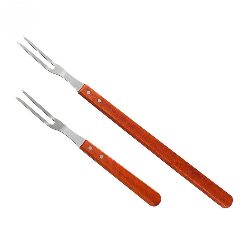 ส้อมบาร์บีคิวด้ามไม้ สแตนเลส สำหรับย่างเนื้อ สเต็ก ใช้ในครัวเรือน