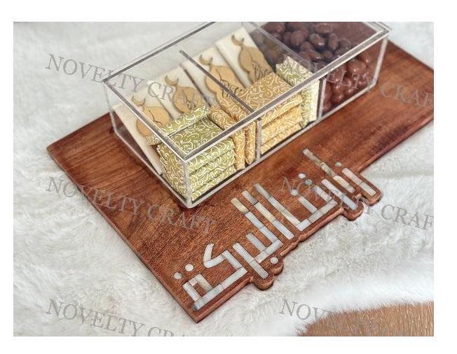 ถาดช็อคโกแลตไม้ฝังมุกพร้อมฝาแก้วดีไซน์หรูสำหรับจานตกแต่งโรงแรม