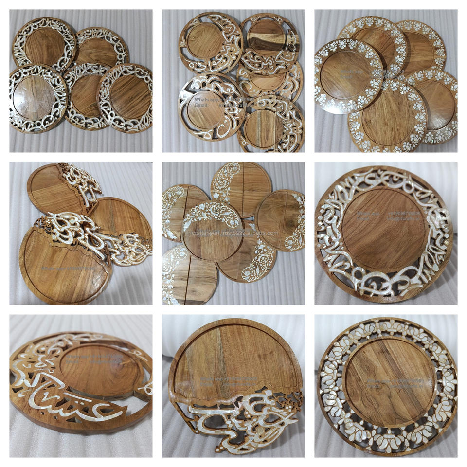 ถาดไม้สีทองทันสมัยดีไซน์แบบแม่และไข่มุกสำหรับงานแต่งงานงานเลี้ยงมุสลิม