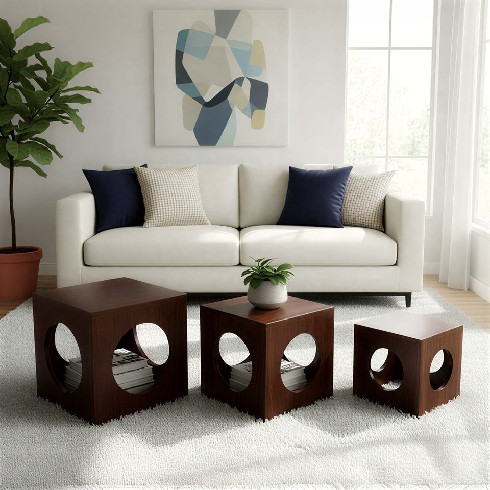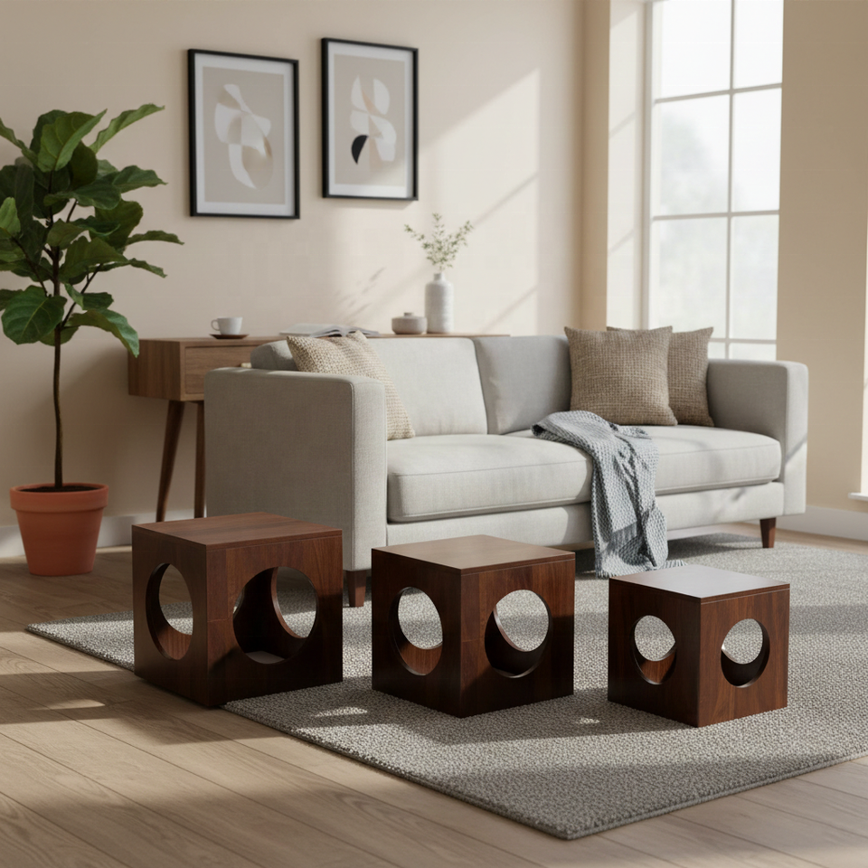 ร่วมสมัยไม้เนื้อแข็งตารางทำรังของโต๊ะด้านข้างไม้มะม่วงอินเดียไม้เฟอร์นิเจอร์ห้องนั่งเล่น