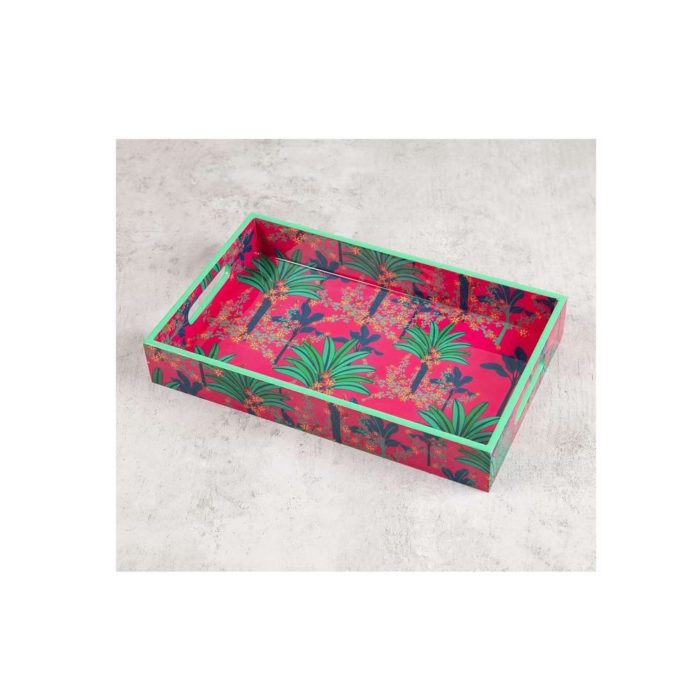 ชุดถาดเสิร์ฟไม้พิมพ์ลายดอกไม้ถาดทรงสี่เหลี่ยมรูปใบโคลเวอร์ทรงสี่เหลี่ยมผืนผ้าสำหรับขนมชา